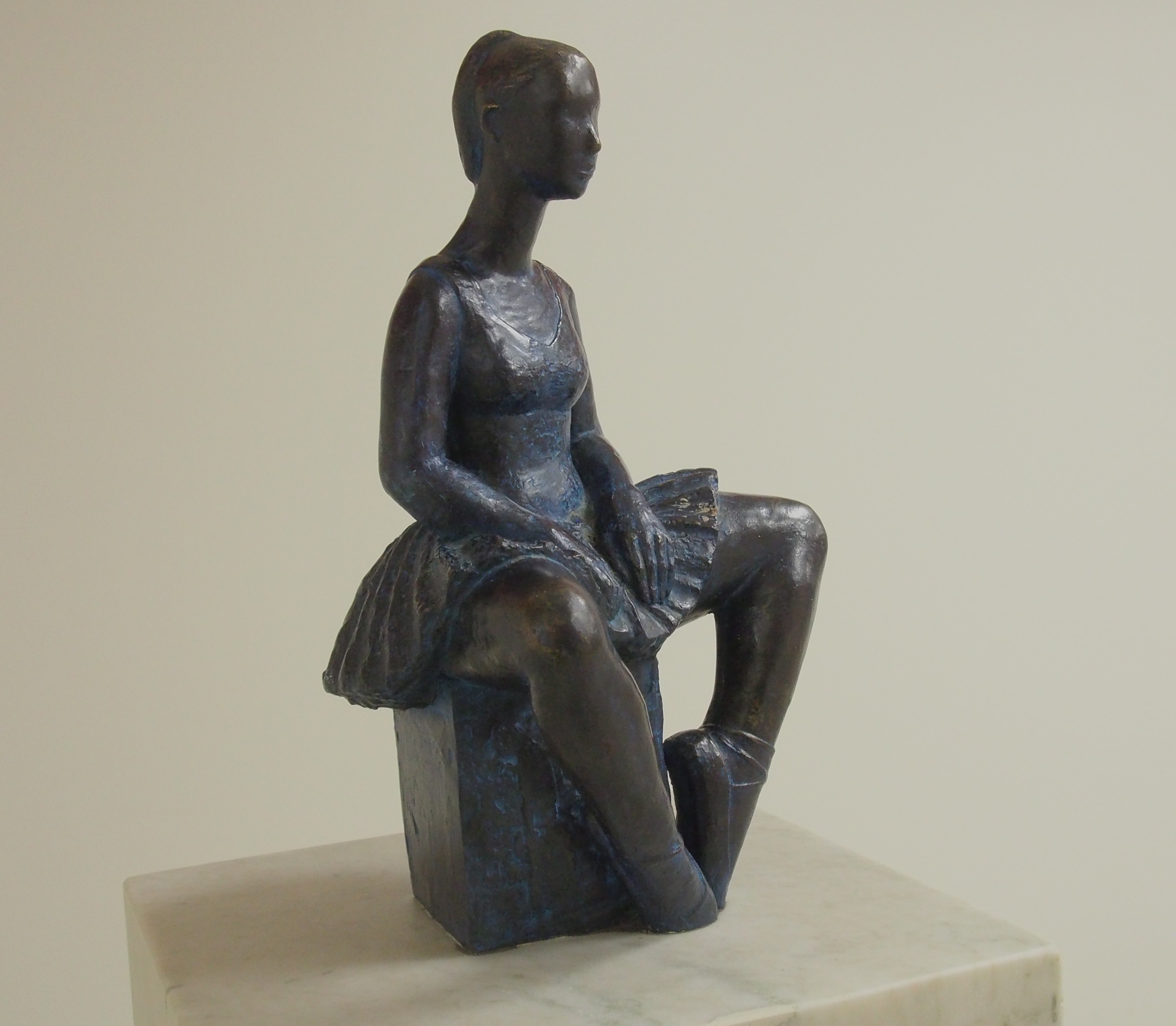 I den stora korridoren mot utgången stannade jag några minuter framför en liten svart staty, som föreställer en sittande balettdansös. Hela hennes figur utstrålade vila och meditation. Tankarna snurrade runt i huvudet på mig. Varför kan inte våra politiker komma och prya på ett sjukhus under julhelgen? Det är så mycket de skulle kunna göra som till exempel att ta hand om alla anhöriga, plocka fram extra stolar och se till att inte de sjuka trillar ur sina stolar. Det var som om den lilla statyn förstod mina funderingar.