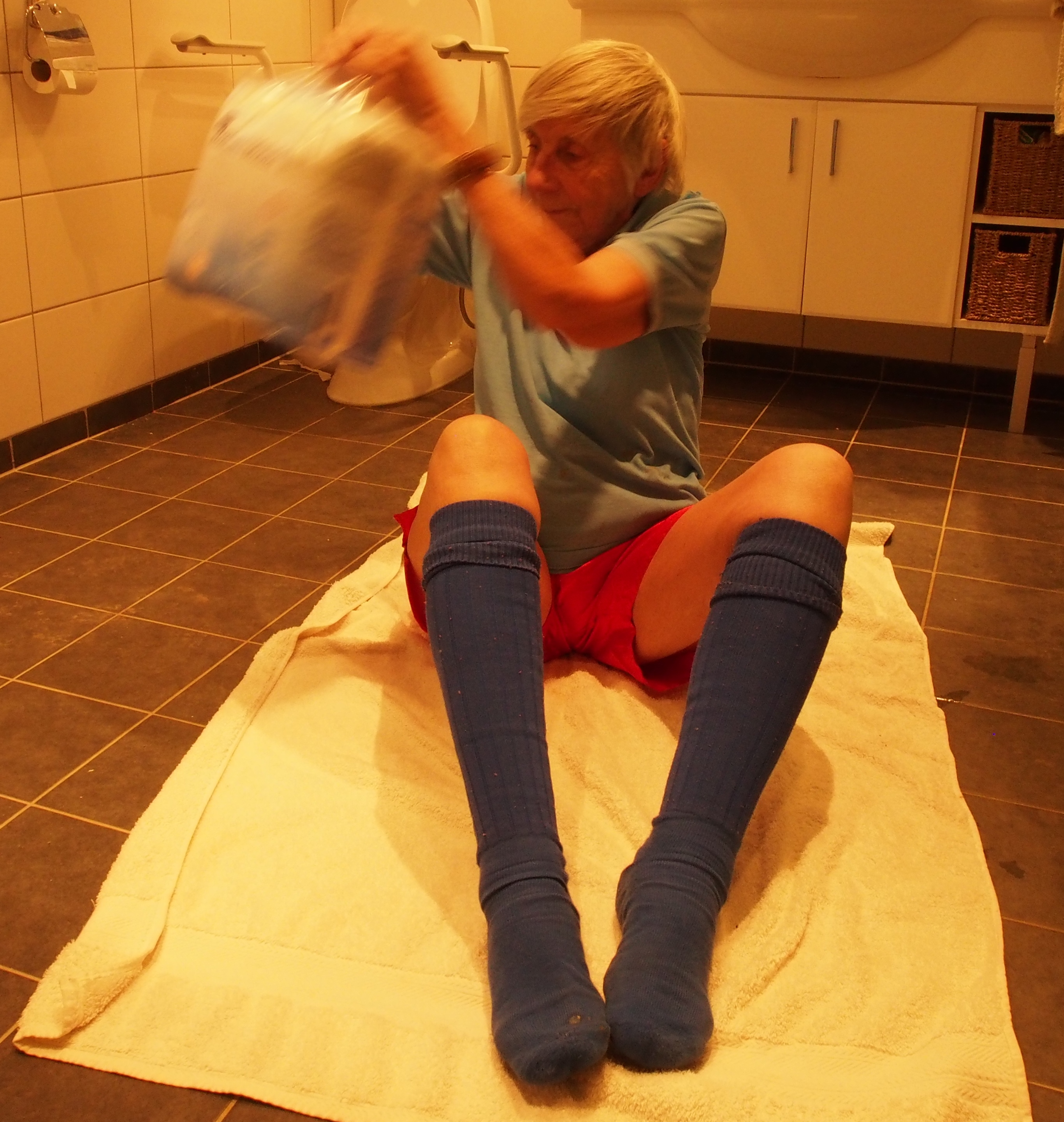 Att träna upp styrka går bra hemma i duschrummet sittande på en badrumsmatta och att använda ett paket blöjor i stället för de hjul, som finns på gymet. Denna form av motion blev under flera år en daglig övning. Då hade jag begränsade möjligheter att gå till mitt gym eller ge mig ut och jogga.