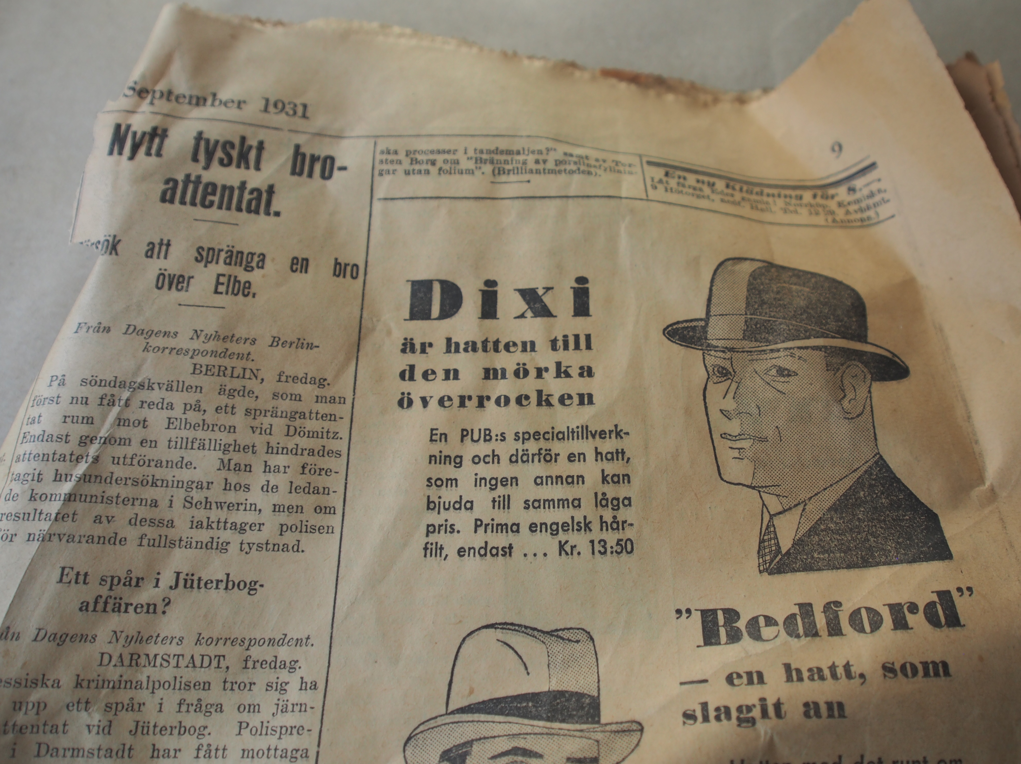 Det märkliga med huset är trapporna, trappan ner till källaren och till övervåningen. Det visades sig svårt att få en hållbar trappa till övervåningen. För att stötta trappstegen stoppade man in allt som blev över mellan trappstegen. Här ligger bland annat en sliten murarrock och Stockholmstidningen från den 19 september 1931. Nu håller jag på att fundera över vad som skall repareras i huset. Ett av problemen är trappan till övervåningen. Är det risk för att den faller samman om jag städar undan allt skräp mellan trappstegen?