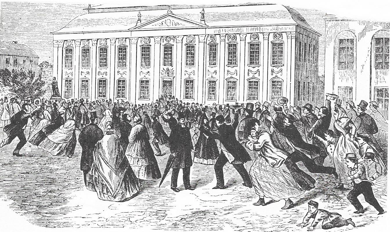 Bilden på hur det såg ut utanför Riddarhuset den dag beskedet kom att Sverige hade fått en ny riksdagsordning har jag hämtat ur boken ”Fredrika Bremers Stockholm” skriven av Bengt Järbe.